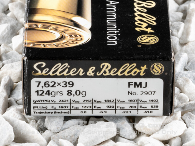 Sellier & Bellot - Full Metal Jacket - 123 Grain 7.62X39 Ammo - 20 Rounds