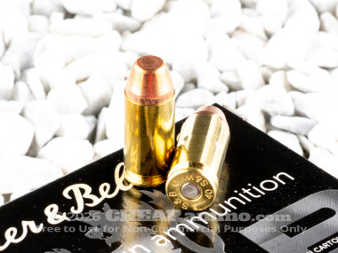 The potency of the 10mm Automatic captured the imagination of many shooters and bullet designers who sought to take the cartridge and make it a bit more… manageable. The .40 Smith & Wesson is but one example of the effort. The .40, aka 10 short, was born of making the FBI's need for a more effective sidearm round that did not have the controllability issues many agents experienced with the full 10. While more manageable than its parent caliber, the service round .40 still manages some bark and bite to achieve the goals the Feds sought. The 180 grain FMJ round be S&B has a muzzle velocity of 968 feet per second with 375 foot pounds of energy. As such, it has similar characteristics to a .45 acp – in a firearms with the capacity closer to a 9mm - so is very good for range training and target practice.