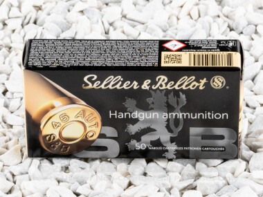The highly respected .45 Automatic Colt Pistol cartridge has been favored by millions since its adoption in 1911. For both civilian and government applications, it has served shooters admirably for creating easy to see holes in paper targets to easy to see results in defense. While its recoil and stopping power are somewhat exaggerated, the .45 acp has never the less proven itself an effective home defense round, even with ball type ammunition, that will not over penetrate like lighter and faster alternatives. The full metal jacket round by S&B has a muzzle velocity of 853 feet per second with 372 foot pounds of energy. This is an ideal product for training and range practice: 1000 rounds to get you through the course or your weekend with friends.