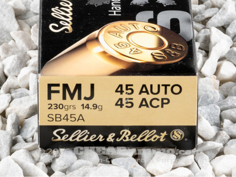 Sellier & Bellot - Full Metal Jacket - 230 Grain 45 ACP Ammo - 50 Rounds