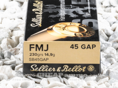Sellier & Bellot - Full Metal Jacket - 230 Grain 45 GAP Ammo - 1000 Rounds