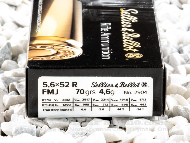 Sellier & Bellot - Full Metal Jacket - 70 Grain 5.6x52mm Rimmed Ammo - 20 Rounds