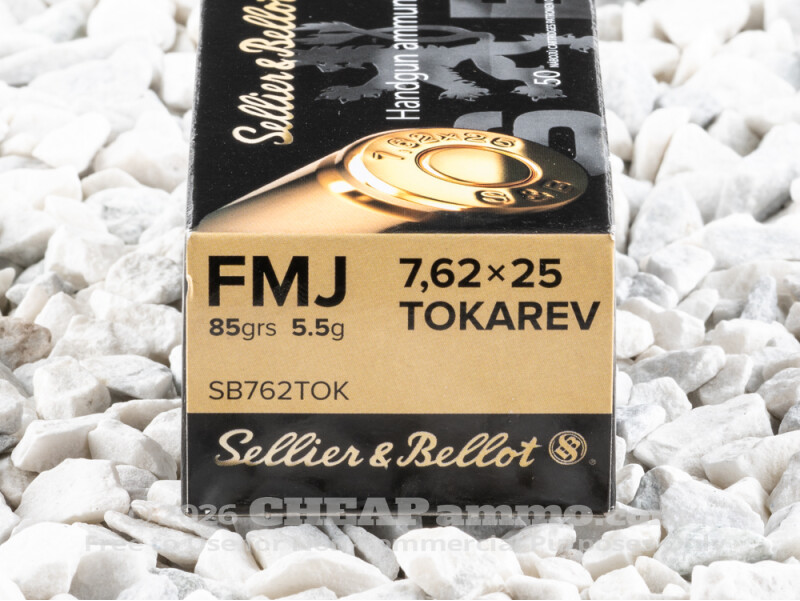 Sellier & Bellot - Full Metal Jacket - 85 Grain 7.62mm Tokarev Ammo - 50 Rounds
