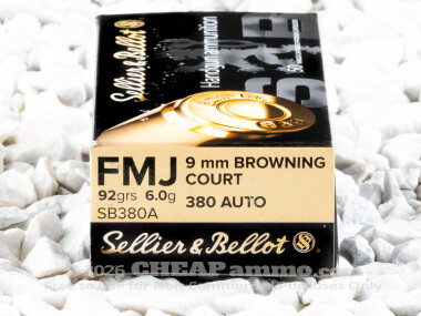 Sellier & Bellot - Full Metal Jacket - 92 Grain 380 Auto Ammo - 1000 Rounds