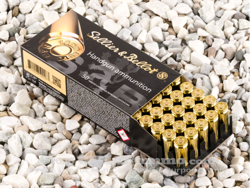 Sellier & Bellot makes a quality 10mm cartridge. Brass case: reloadable. Nonmagnetic bullet: range compliant. Modern Boxer primer: no corrosion. Available with lightning-fast shipping when you: order from CheapAmmo.com.