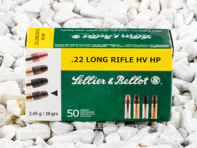 Sellier & Bellot’s 38 grain hollow point lead bullet has a muzzle velocity of 1230 feet per second with 125 foot pounds of energy. This is a round that will perform reliably out of most any self-loading rimfire firearm that is depended upon in the wilderness of the home that is available in 500 round brick pricing.