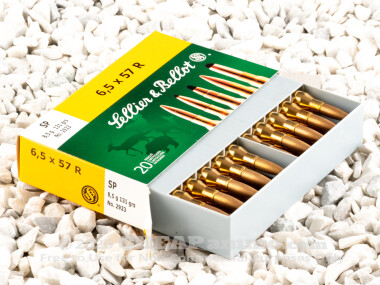 The rimmed 6.5x57mm was one of the many new smokeless powder designs of the late 19th century. Developed for the Hungarian half of the Austro Hungarian Empire. The cartridge is also known as the .256 Mannlicher and was used by the Dutch military up until 1945. It remains a very popular deer and boar hunting cartridge in Europe where it is appreciated for its accuracy and its reputation for creating precise wounds without a lot of damage to the game meat. The 131 grain soft point bullet by Sellier & Bellot has a muzzle velocity of 2543 feet per second with 1882 foot pounds of energy. It is similar to the 6.5mm rounds that has succeeded it in military service yet remains valued by many hunters for being on point, just the way it is. Just the round necessary for keeping that custom European hunting rifle with you in the field.