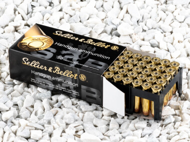 The .357 Smith & Wesson magnum ammo is perhaps one of the most popular revolver cartridges in the world after the .38 Special. Given that firearms of the former can chamber and fire the latter, it is easy to understand why. The .357 was developed in the 1930s to help lawmen compete with more brazen outlaws who had access to better firepower. The Magnum was fired in revolvers that police were already familiar with, but offered better performance in defeating cover, both intentional and impromptu. The 158 grain soft point bullet by Sellier & Bellot has a muzzle velocity of 1263 feet per second with 560 foot pounds of energy. It is well suited for target and range time but also serviceable as a hunting and defense round, especially where hollow points are restricted for use as the latter.