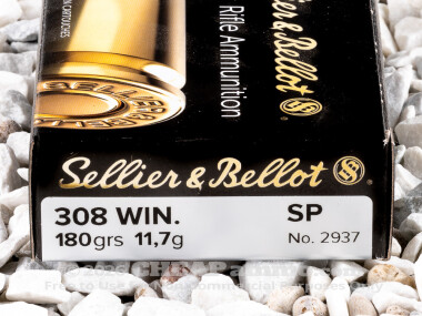 In 1952 Winchester introduced the .308 Winchester, which was the culmination of the search for a .30 caliber cartridge that was shorter than the. 30-06 yet had similar ballistic characteristics. This was motivated by having a shorter action that could function better in self loading rifles as well as having a shorter receiver for more compact, sporting rifles. The result was very successful as it became a standard round throughout the world as both the .308 for hunting and long-range target competitions and the martial equivalent two years later: the 7.62x51 NATO, though the former is usually loaded to slightly higher pressures. The 180 grain, soft point bullet loaded into this .308 ammo by Sellier & Bellot exits the muzzle at 2454 feet per second with 2408 foot pounds of energy. This is a premium hunting round combining long distance accuracy with superior knock down capabilities.