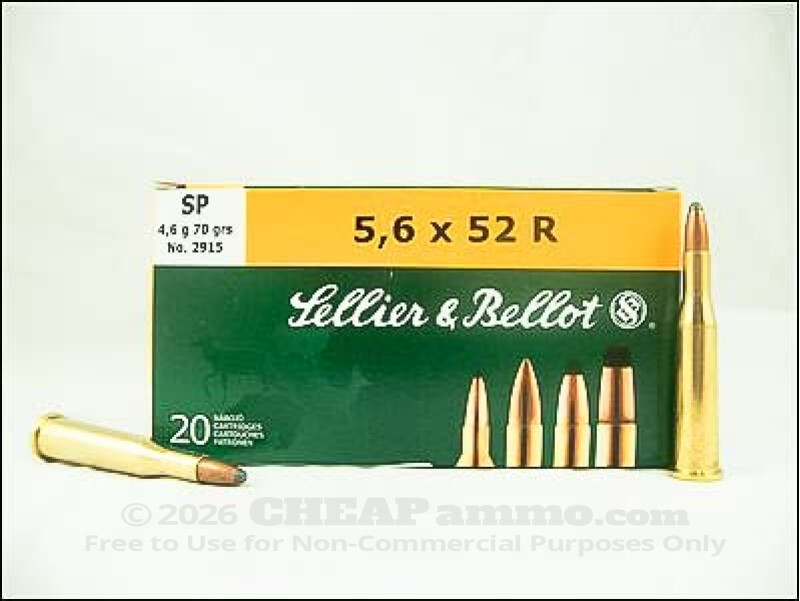 Sellier & Bellot - Soft Point - 70 Grain 5.6x52mm Rimmed Ammo - 20 Rounds