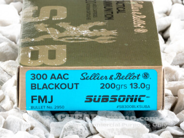 Sellier & Bellot Subsonic - Full Metal Jacket - 200 Grain 300 AAC Blackout Ammo - 20 Rounds