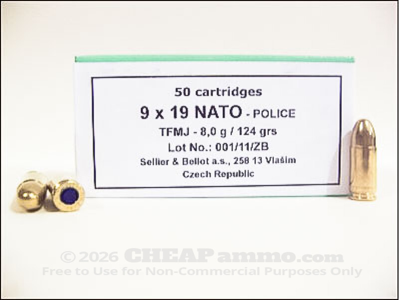 There’s a lot of different 9mm ammunition in the world and there is a tendency to assume that NATO marked branding is the same as the 9mm +P NATO issue. Sellier & Bellot marks these rounds as NATO Police to indicate a police standard quality, not to imply that they are the higher pressure capable rounds: the absent “+” on the headstamp proves they are safe for use in modern firearms not rated for the additional power.