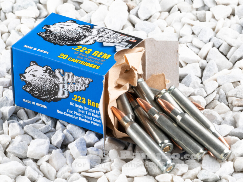 Silver Bear - Hollow Point - 62 Grain 223 Remington Ammo - 500 Rounds