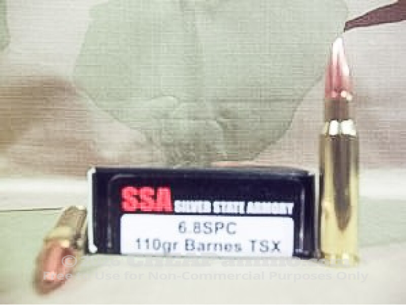 One of the first and most trusted maker of 6.8 SPC cartridges, Silver State Armory (SSA) uses the latest in manufacturing technology for both cases and bullet designs. Designed for maximum ballistic performance, the triple shock bullet is accurate, penetrating deep with optimum expansion.