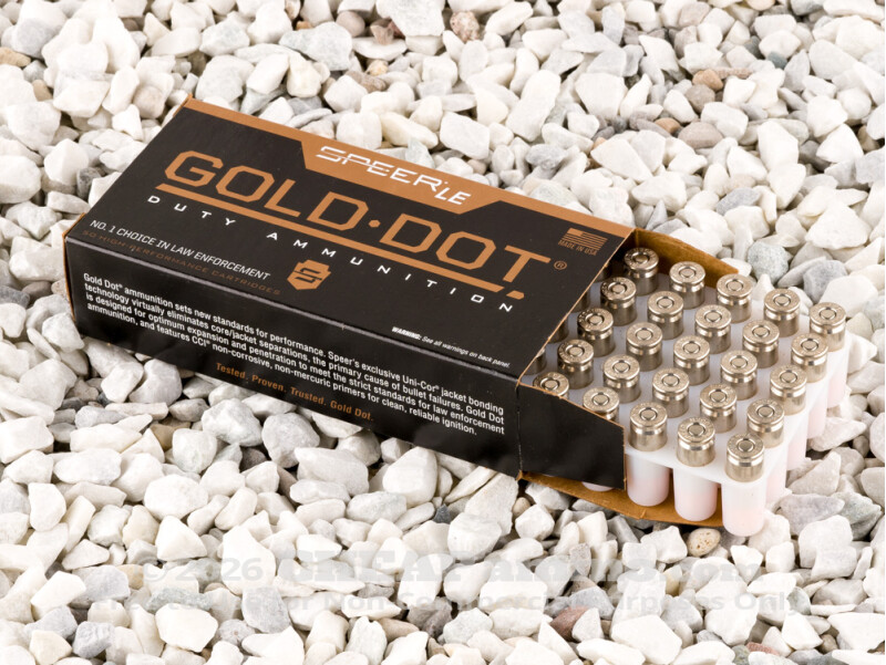 Speer made history when they introduced the Gold Dot -- the first handgun bullet with a true bonded core. This 9mm cartridge’s 124 grain projectile was formed via the proprietary Uni-Cor process, where its alloyed lead core was electrochemically fused to its copper jacket one molecule at a time. Because of this the Gold Dot preserves virtually 100 percent of its weight as it pierces plywood, wall board, and steel alike so that it may still penetrate a threat deeply.