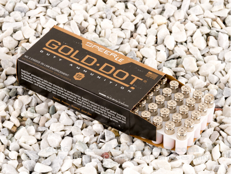 This cartridge quite naturally features the Gold Dot jacketed hollow point bullet. Its structural-plated pressure-formed lead-alloy core is electrochemically fused to its copper jacket. That’s why the Gold Dot boasts exceptional balance and the precision which comes with it. It also possesses superior durability, and the ability to penetrate two sheets of 20 gauge steel at 10 feet without losing more than a single grain of its weight in the process. And thanks to the Gold Dot’s precision-formed nose cavity, it is programmed to expand quickly and uniformly as it bores into a threat.