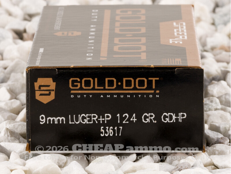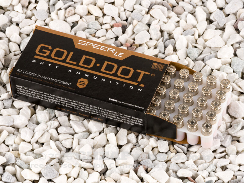 The Gold Dot is a premium jacketed hollow point bullet. Once Speer pressure-forms its alloyed lead core, they submerge it in an electrified chemical bath that assembles its jacket one atom at a time. The result is a highly concentric jacket, which gives the Gold Dot the rotational stability it needs to exhibit good accuracy. Its bonded jacket also fortifies the Gold Dot considerably. Even penetration of safety glass at 10 feet will only remove about 17% of the 124 grain bullet’s weight – the reason why it can still penetrate to a depth of 15 inches afterward.