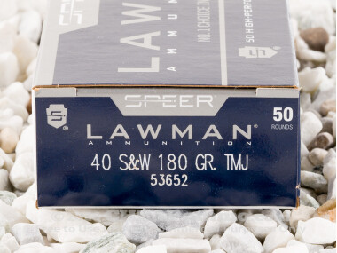 Speer offers their Lawman line of ammunition so law enforcement officers can become more effective marksmen. But maybe you aren’t a lawman. Maybe you are a lawwoman – or maybe you are only a man! Doesn’t matter. So long as you (A) have a 40 S&W firearm, and (B) want to shoot targets, these handy range loads will deliver the goods.