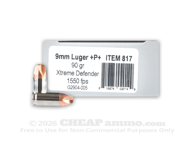 Underwood - Xtreme Defender - 90 Grain 9mm +P+ Ammo - 200 Rounds