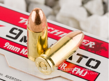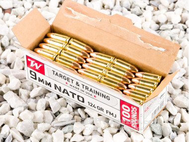 Put extra pep in your pistol with the power of 9mm NATO! Winchester loads this ammo in accordance with NATO specifications, which means its chamber pressure is capped at 36,500 psi instead of the standard 35,000 psi. It’s not as hot as 9mm +P, although you’d still be well advised to fire it in firearms that are rated for +P.
