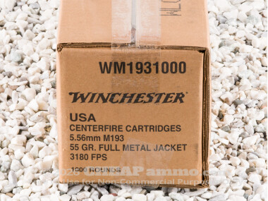 Winchester - Full Metal Jacket - 55 Grain 5.56x45mm Ammo - 1000 Rounds