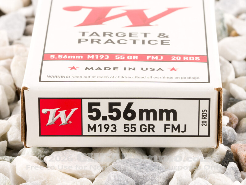 Winchester - Full Metal Jacket M193 - 55 Grain 5.56x45 Ammo - 20 Rounds
