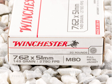 Winchester - Full Metal Jacket M80 - 149 Grain 7.62x51 Ammo - 500 Rounds