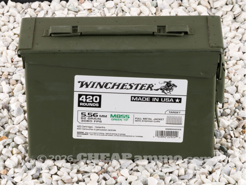 Winchester - Full Metal Jacket M855 - 62 Grain 5.56x45mm Ammo - 420 Rounds in Ammo Can
