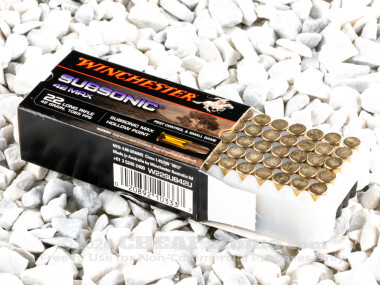 Since its introduction in the 1880’s the versatility of the .22 Long Rifle is constantly being pushed by specific bullet designs. It is also the most popular for target shooting and skill development. The round’s true strength comes in its low cost (at least comparative to other rounds) and low report which means that not only is it economically viable to use a lot of it, it generally does not draw a lot of attention. Such is the intention behind these Winchester subsonic rounds. These 42 grain lead, hollow point bullets have a muzzle velocity of 1065 feet per second with just over 100 foot pounds of energy. Suitable for small pest removal or close range varmint hunting, out of a rifle they sound little louder than a strong clap. They may not cycle through all self-loading firearms, but are perfectly reliable out of manual action rifles and revolvers.