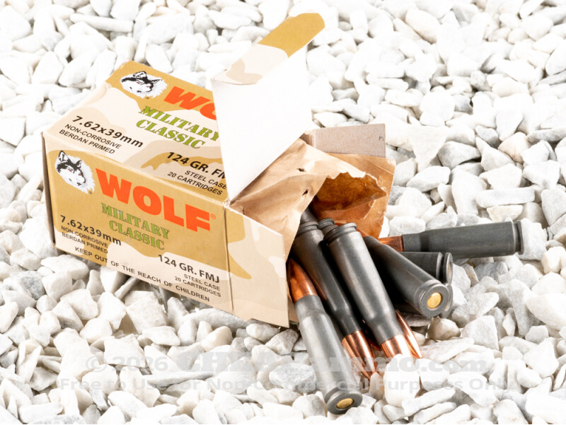 Wolf - Full Metal Jacket - 124 Grain 7.62x39 Ammo - 1000 Rounds