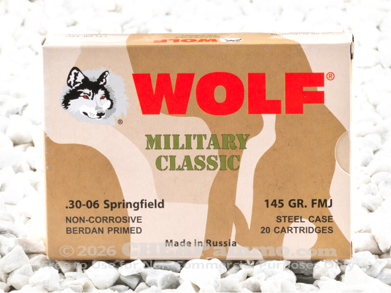 Wolf - Full Metal Jacket - 145 Grain 30-06 Ammo - 500 Rounds