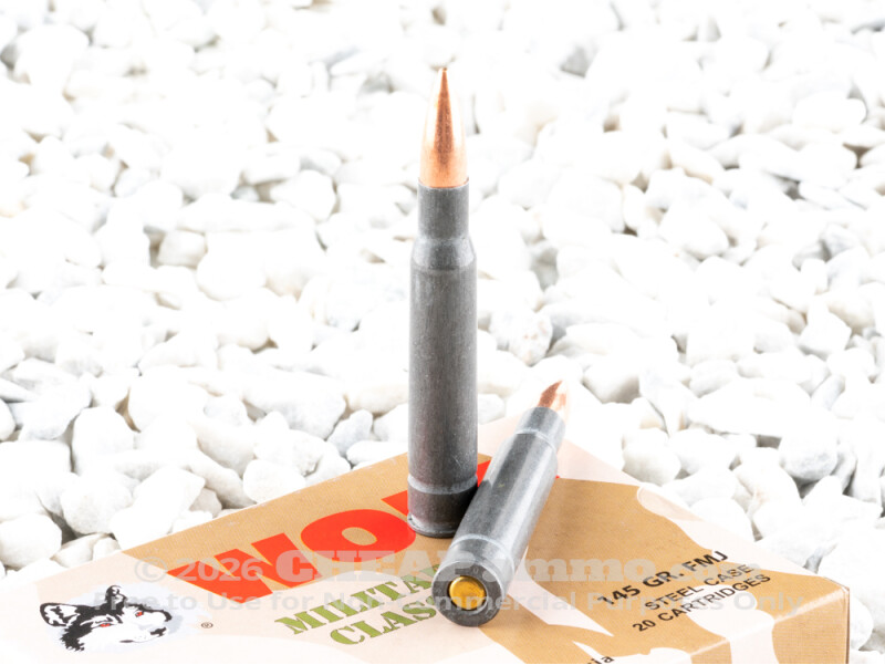 This round still performs like a champ. Its casing is coated in a thin layer of polymer, which reduces friction during feeding and extraction and is formulated not to burn off and cake your action in goo. Its 145 grain bullet is a FMJ, also economical because the gilding metal is copper washed steel instead of pure copper.